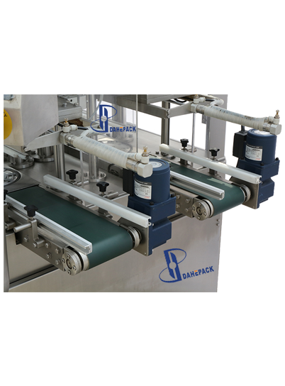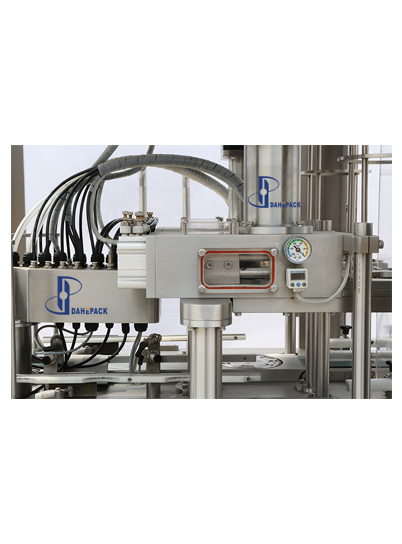 合理的給蓋方式,氣缸預(yù)先將蓋子送到封罐壓頭下方,封罐時(shí)罐子升高頂起蓋子到壓頭,保證100%準(zhǔn)確對位,避免了預(yù)先給蓋到罐子上,罐子移位時(shí)蓋子偏移導(dǎo)致封罐劃痕的風(fēng)險(xiǎn);